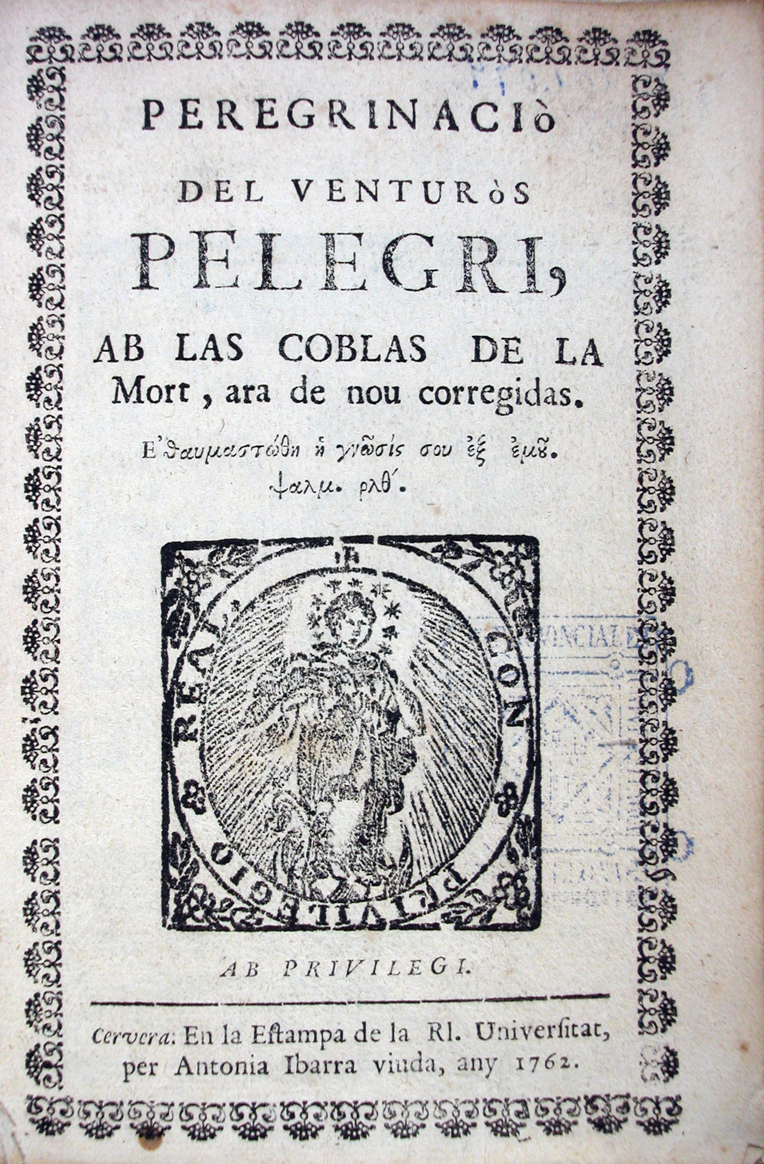 La biblioteca de Reserva ha catalogat un exemplar curiós. Es tracta d’una edició del 1762 de l’obra anònima Peregrinació del Venturós Pelegrí, impresa a Cervera a la impremta de l’antiga Universitat per Antònia Ibarra, membre d’una important nissaga d’impressors.