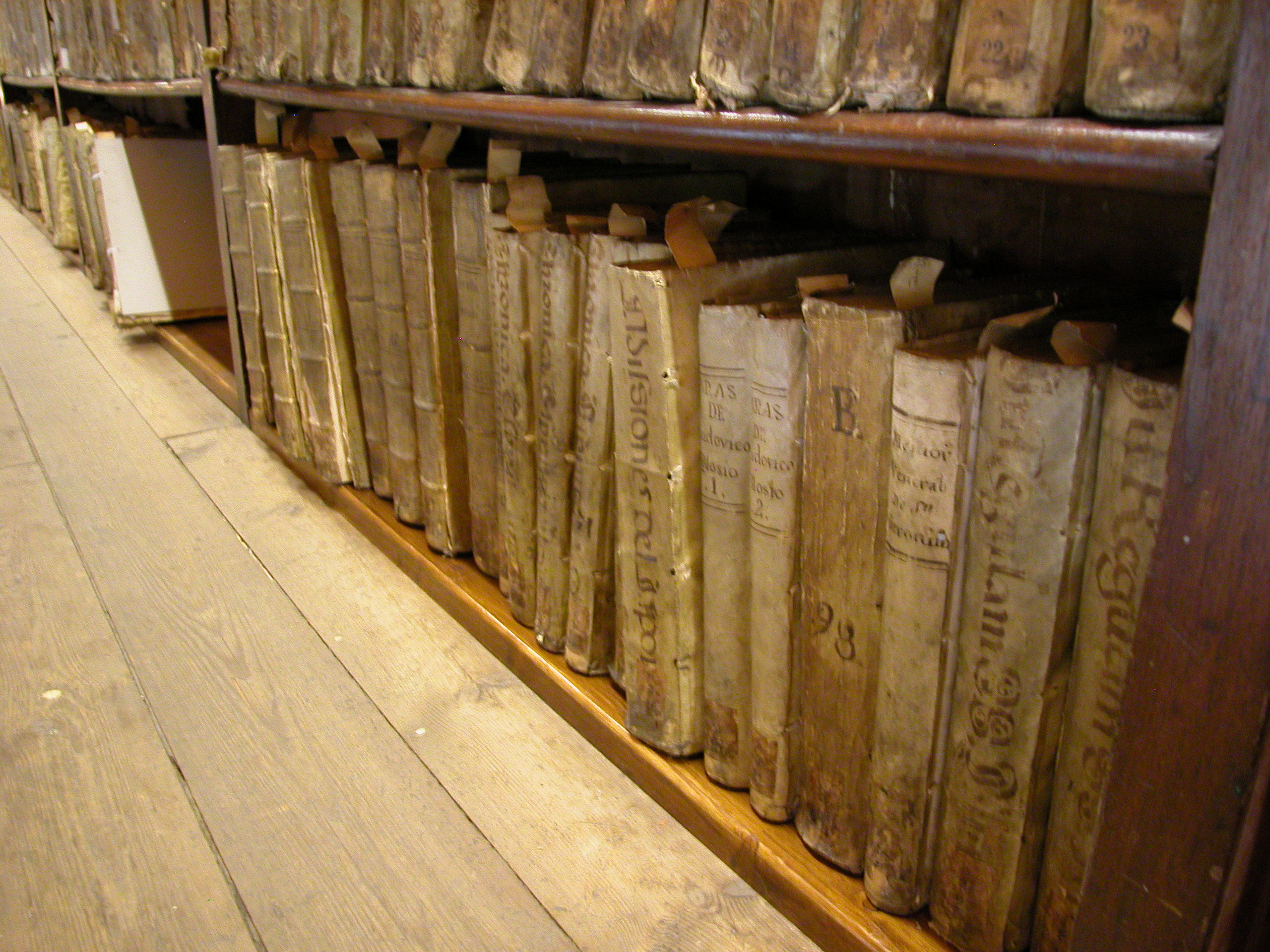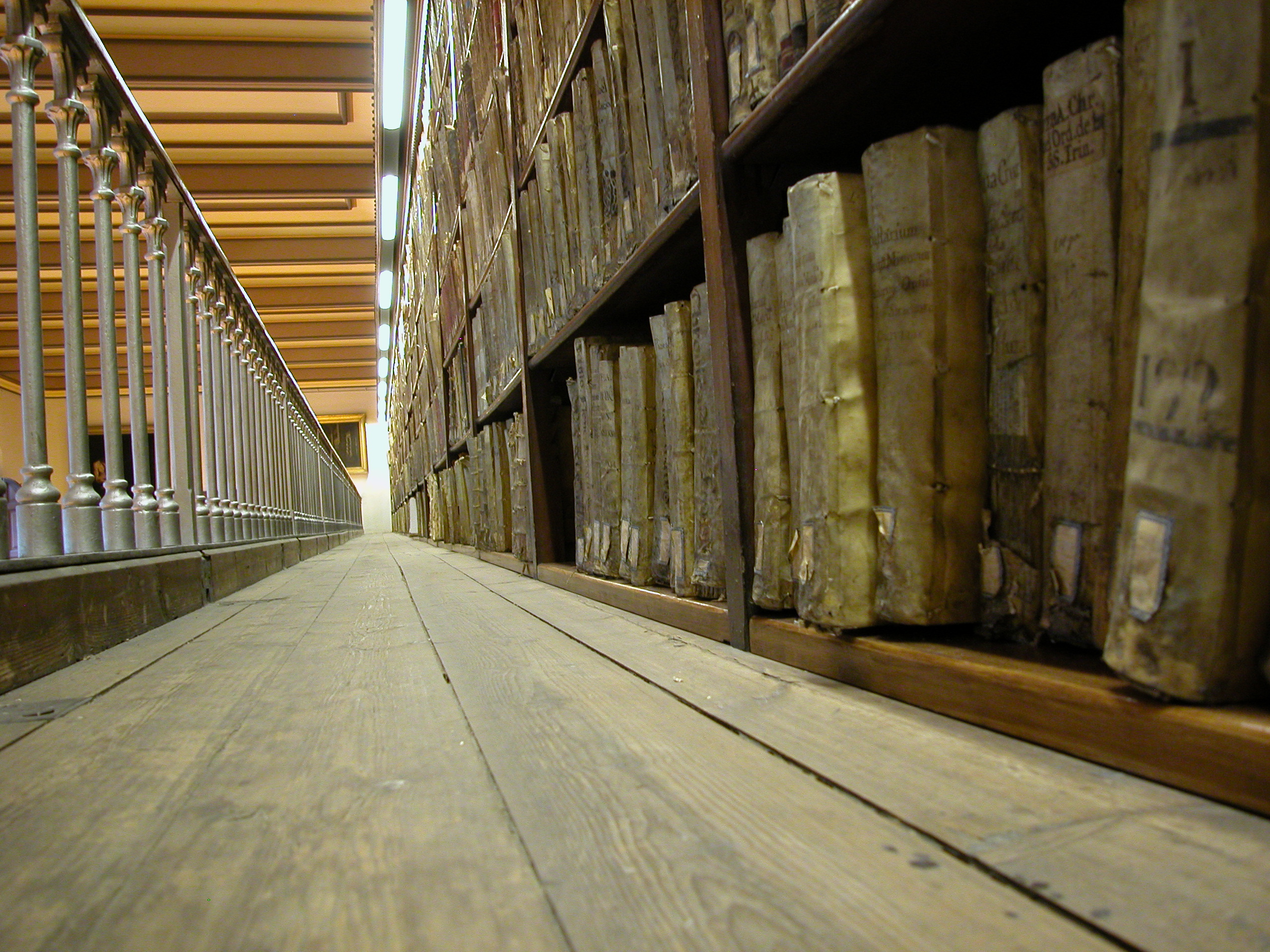 Mentre que abans els llibres més voluminosos i pesats reposaven directament sobre la tarima, ara la post de tres centímetres de gruix que s’ha col·locat representa una millora, encara que aparentment modesta, de grans efectes preventius per a la conservació d’aquests volums, ja que els preserva de la humitat i de la pols.