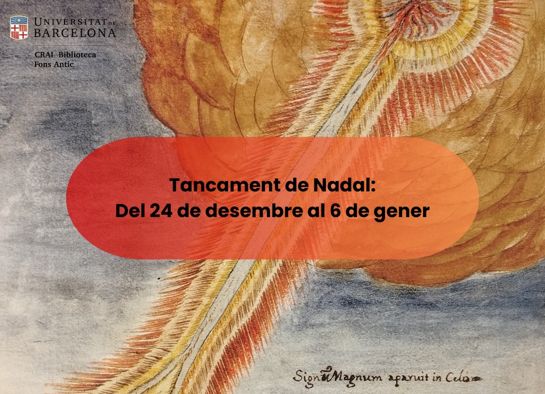 Entre el 20 de maig i el 25 de juny es podrà visitar la mostra a les vitrines de l’espai expositiu que compartim amb el CRAI Biblioteca de Lletres. Els comissaris són l’Oriol Brugarolas i la Sílvia Canalda, professors del Departament d’Història de l’Art de la Universitat de Barcelona. El 26 de maig a les 17h la Sílvia Canalda oferirà una visita guiada i l’11 de juny a les 18h, els comissaris n’oferiran una altra, seguida de la conferència de la mà d’Antonio Ezquerro, musicòleg del CSIC, amb el títol L’oratori, una forma musical per descobrir. Us agrairem que ens confirmeu l’assistència amb un correu a: bib.fonsantic@ub.edu